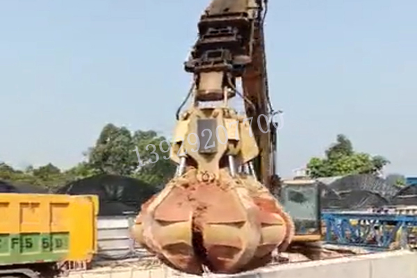 液壓式抓斗本身裝有開合結構,一般用液壓油缸驅動,由多個顎板組成的液壓式抓斗也叫液壓爪。