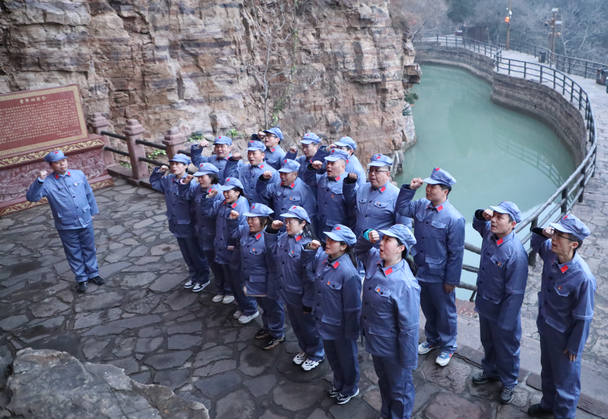 大家站在青年洞下,站在習主席走過的地方感受著催人奮進的紅旗渠精神,黨員們更是紛紛舉起右手對著黨旗莊嚴宣誓,充滿著激動的聲音響徹山谷!