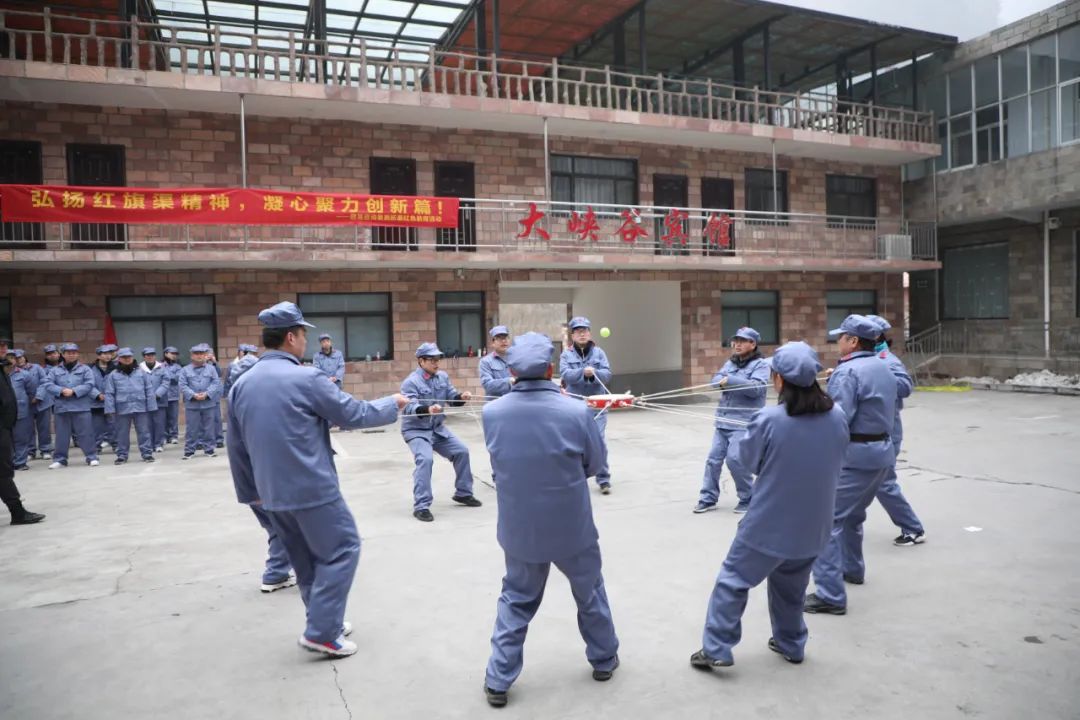 吃完早飯休息過后,就又開始了有趣的團隊游戲環(huán)節(jié),在教官的帶領(lǐng)下,大家先進行一些熱身活動,驅(qū)走身上的寒氣,接下來有趣的“橋梁工程、擊鼓顛球”等團建游戲拉開序幕。