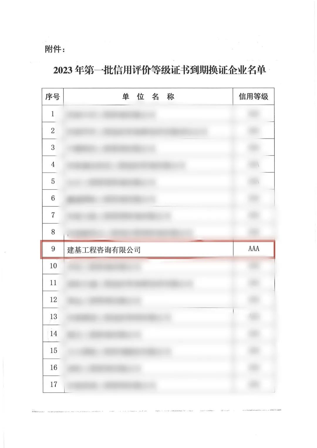 近日,河南省注冊(cè)造價(jià)工程師協(xié)會(huì)發(fā)布了《關(guān)于2023年第一批河南省工程造價(jià)咨詢企業(yè)信用評(píng)價(jià)等級(jí)證書到期換發(fā)新證的通知》。建基咨詢?cè)俅螛s獲“工程造價(jià)咨詢企業(yè)AAA級(jí)”信用評(píng)價(jià)等級(jí)。