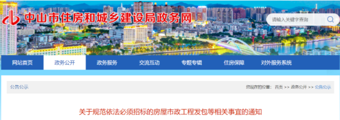 四、我市各級建設行政監督部門應主動加強對建設項目的監管。目前,中山市住房和城鄉建設管理信息系統已與中山市公共資源交易系統對接,有關行政監督部門可通過“中山市住房和城鄉建設管理信息系統查詢→輔助決策→綜合查詢→項目中標通知書查詢”欄目查詢在中山市公共資源交易平臺已完成招標的房屋市政工程招標項目的中標信息,及時掌握項目建設進度并加強對建設項目的監管。