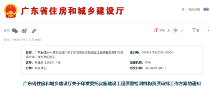1.2023年2月1日0時(shí)0分起,省住房城鄉(xiāng)建設(shè)廳委托各地級以上市住房城鄉(xiāng)建設(shè)主管部門正式開展建設(shè)工程質(zhì)量檢測機(jī)構(gòu)資質(zhì)審批工作。