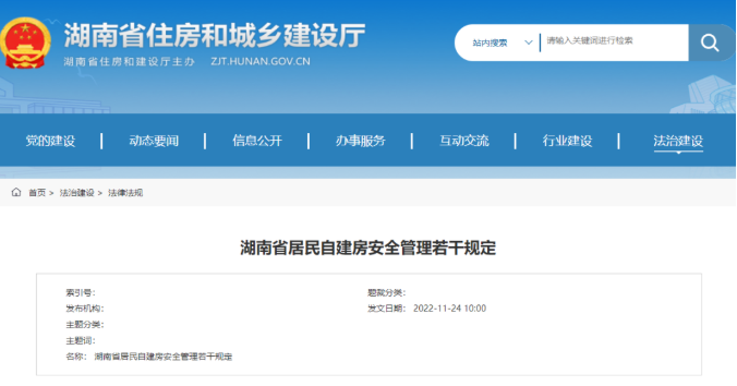 11月23日下午,湖南省第十三屆人民代表大會常務委員會第三十四次會議表決通過《湖南省居民自建房安全管理若干規定》(以下簡稱《規定》),將于2023年1月1日起施行。