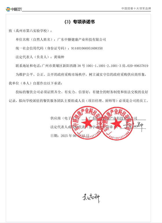 YZCG-DLG2025028 | 禹州市第六實驗學校餐飲服務項目 | 廣東中膳健康產業科技有限公司 | 廣州市黃埔區新陽西路 38 號 1001-1、1001-2、1001-3 房 | ||||